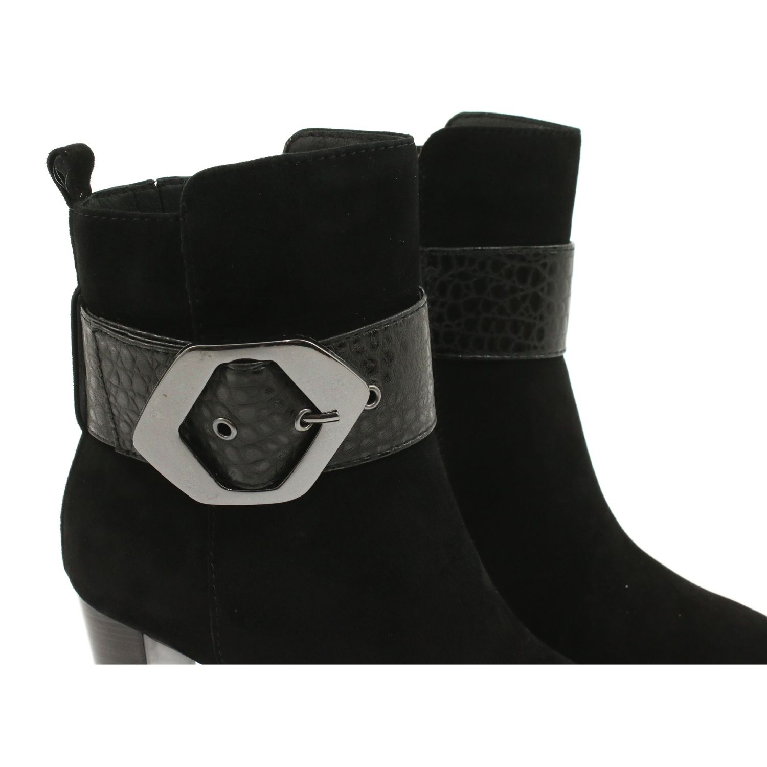 Cizmele Caprice Elegant și confortabile și confortabile Caprice 25317-25 025 sunt combinația perfectă de design la modă și confort de utilizare. Realizate în întregime din piele naturală din piele de căprioară (NUBUK) în universală, neagră profundă, acestea vor completa perfect atât stilizări zilnice, cât și mai formale. Catarama decorativă adaugă personaj, iar nasul clasic, ușor ascuțit, subțire.