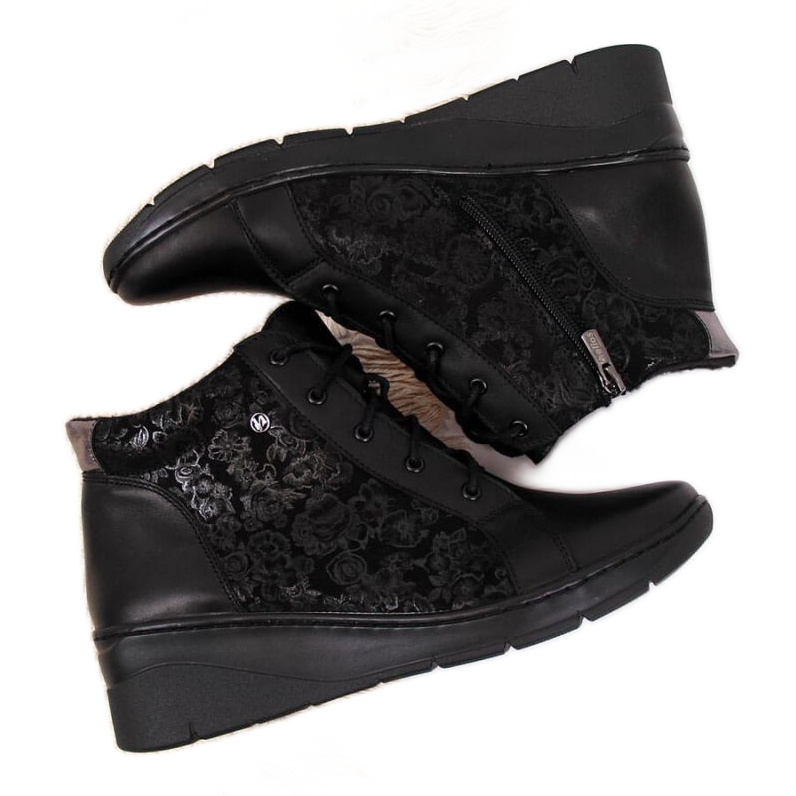 Helios Cizme din piele pe toc tip pană Helios W H537 negru