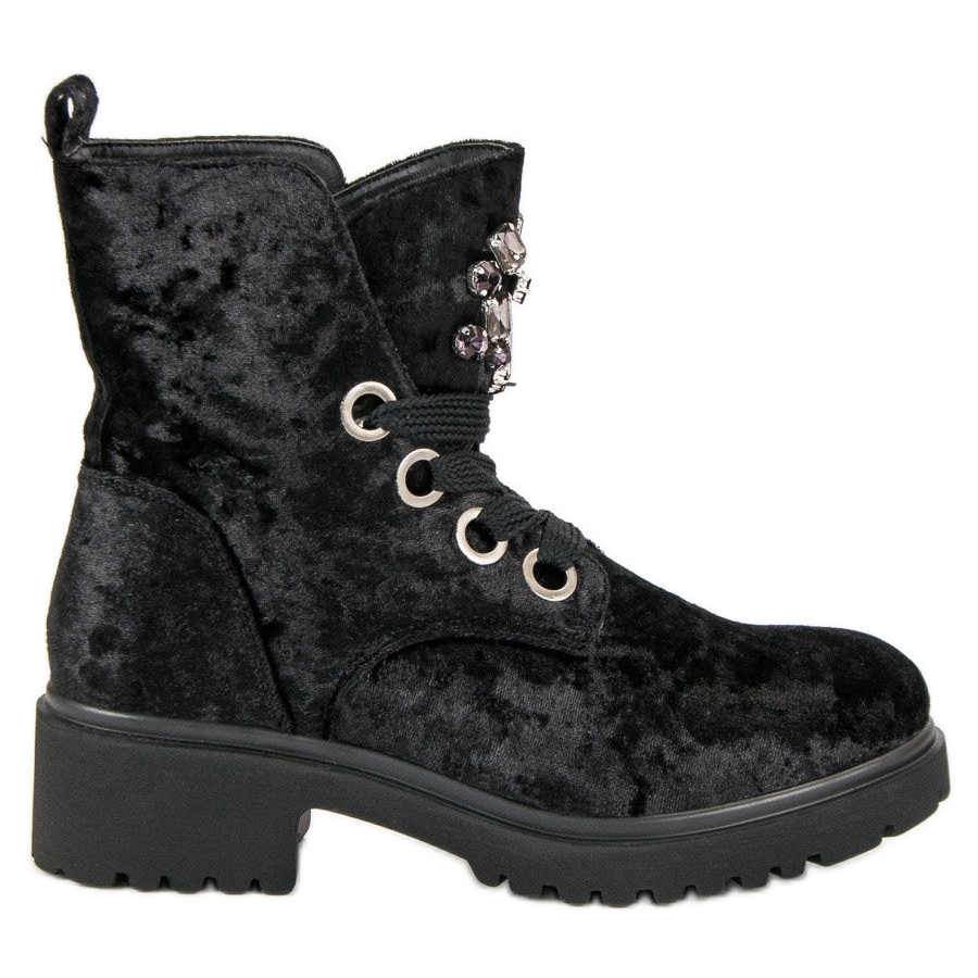 Descoperiți eleganța și confortul într-una singură datorită botinelor de velur Kylie într-o nuanță clasică de negru. Este o alegere ideală pentru femeile care apreciază designul la modă și confortul de zi cu zi. Cizmele se remarcă prin decorațiuni subtile cu cristale, care le conferă un caracter unic și le fac să atragă privirea.