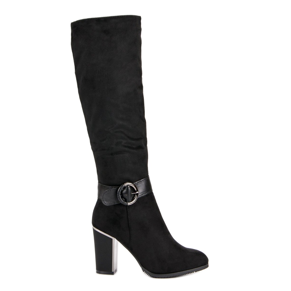 Partea superioară înaltă, ajungând până la genunchi, evidențiază perfect picioarele, iar tocul moale face cizmele extrem de confortabile. Montate pe un stâlp stabil de 9 cm înălțime, ele îmbină perfect eleganța și caracterul practic, ceea ce le face o alegere excelentă pentru serile sau petreceri. În plus, călcâiul patentat și cureaua decorativă le conferă un caracter unic.