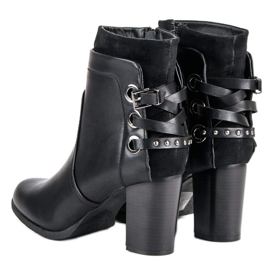 Acestea sunt botine negre elegante cu toc înalt de la marca Super Mode - alegerea perfectă pentru femeile care caută o combinație de confort și stil. Aceste cizme sunt o adevărată operă de artă a încălțămintei, perfecte pentru sezonul toamnă/iarnă. Interiorul, izolat cu o pătură de pantofi, garantează căldură, ceea ce o face o alegere ideală pentru zilele mai reci.