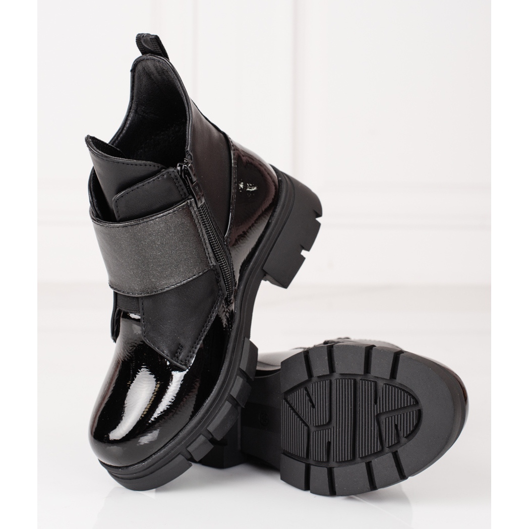 Cizmele pentru fete din piele ecologica lacuita Shelovet in negru sunt alegerea perfecta pentru micile fashioniste care apreciaza stilul si confortul. Acești pantofi eleganți sunt confecționați din imitație de piele de înaltă calitate, ceea ce îi face atât durabili, cât și ușor de întreținut.