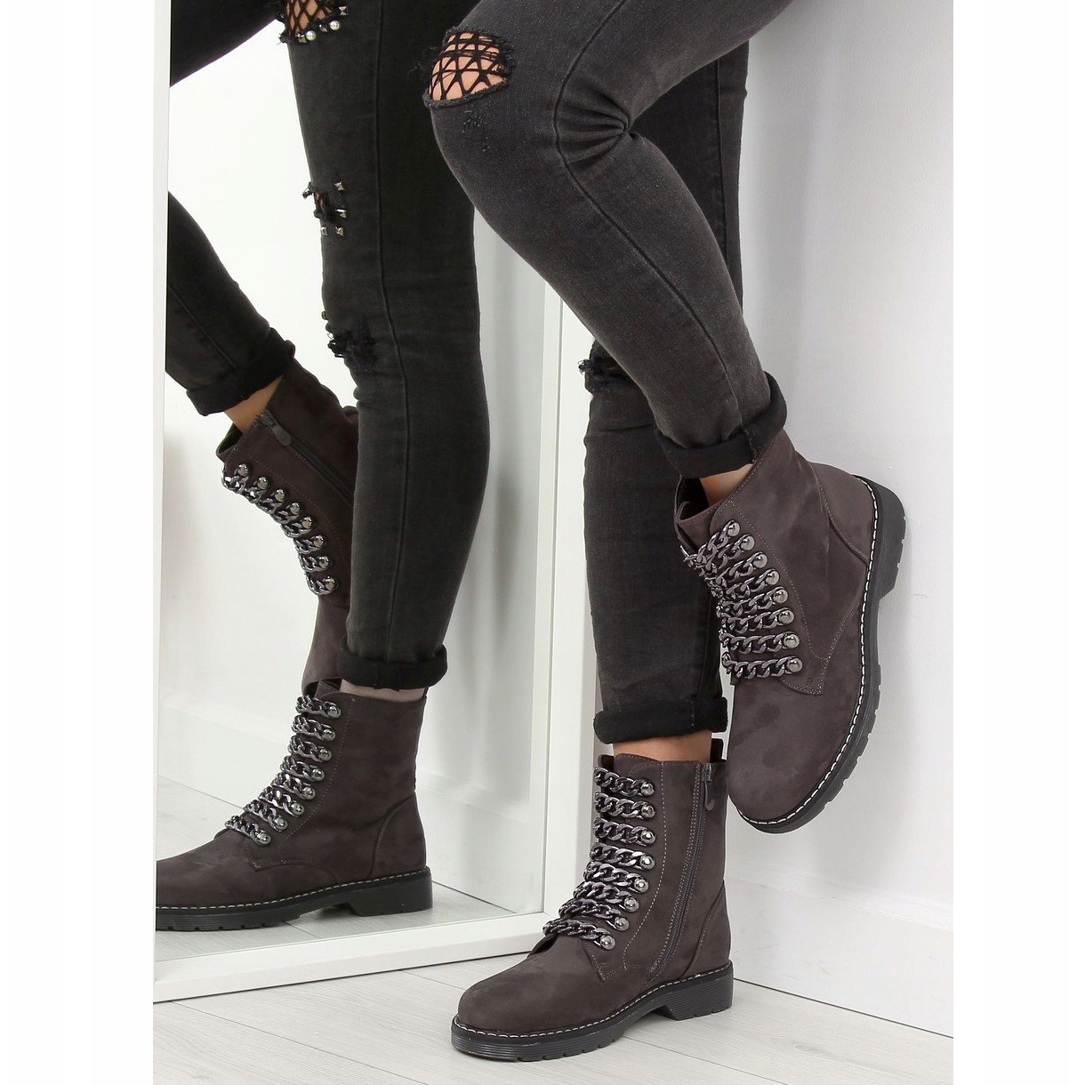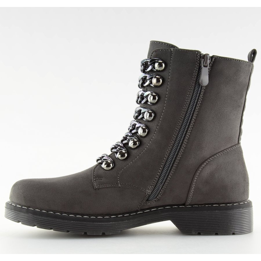 Descoperă un stil unic cu botinele worker originale în gri 061-27-1 Gri! Aceste botine de damă sunt combinația perfectă de design la modă și funcționalitate. În loc de șiretul clasic, obțineți lanțuri decorative unice care conferă încălțămintei un caracter rock, potrivindu-se perfect cu tendințele stilului urban.