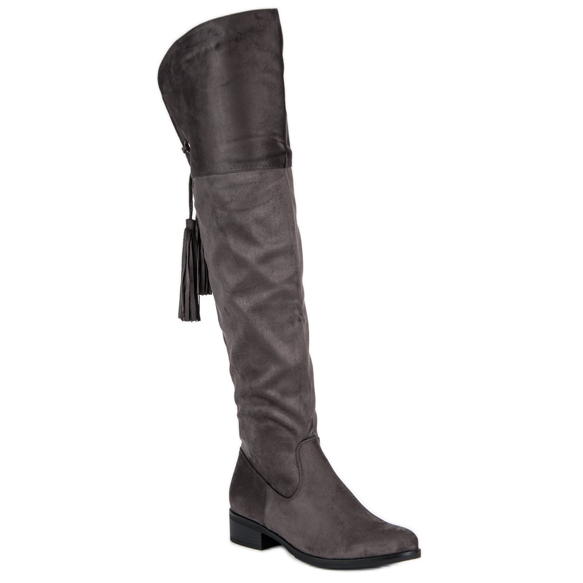 Cizmele înalte cu toc plat Forever Folie Gri sunt alegerea perfectă pentru femeile care caută încălțăminte elegantă și confortabilă pentru zilele mai reci. Acesti muschetari clasici peste genunchi sunt confectionati din piele intoarsa ecologica, care nu le afecteaza doar estetica, dar are grija si de mediu.