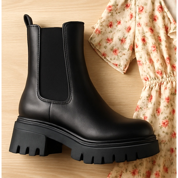 Cizme groase – cum să porți botine masive cu rochii fluide?