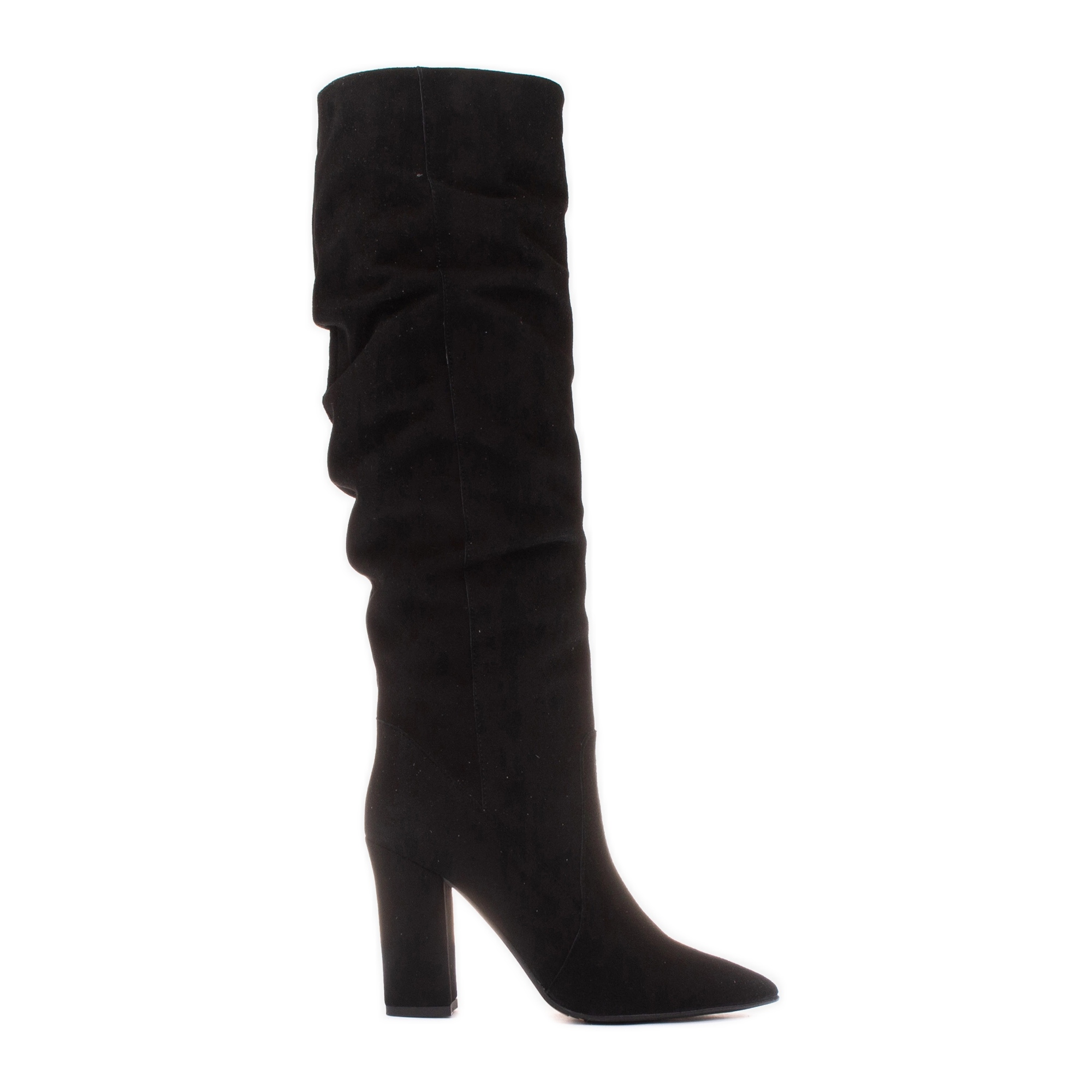 Marco Shoes Marco Shoes Cizme înalte, ciufulite, negre, din piele de căprioară naturală negru