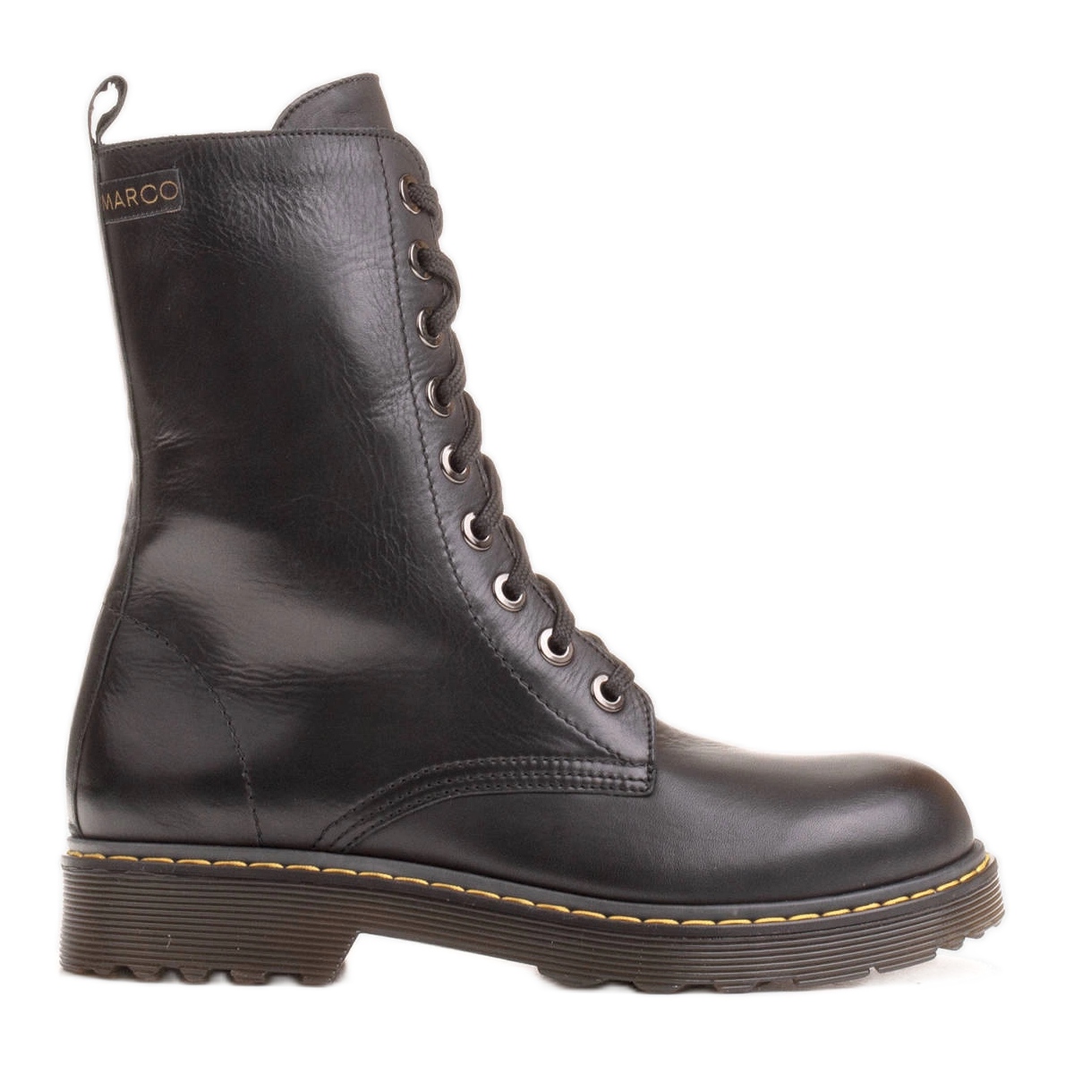 Cizme elegante, izolate, pantofi Marco, concepute pentru femeile care apreciază o combinație a unui personaj rock clasic cu confort în fiecare zi. Piele naturală cu cereale negre, un fermoar practic și un element de fixare și o talpă semi -transparentă formează un model la modă, universal, pentru luni mai răcoroase.