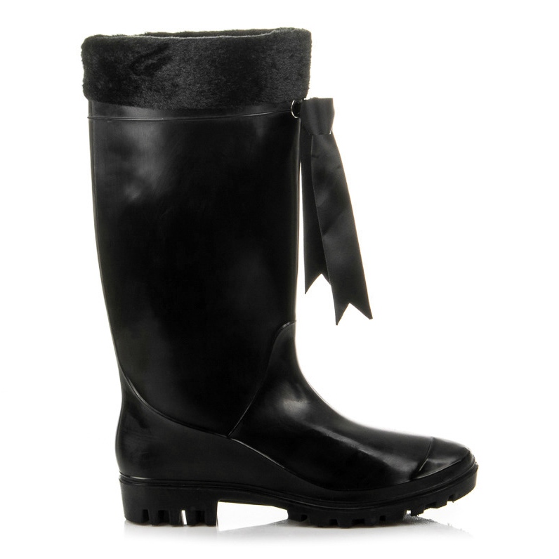 Cizmele înalte, izolante, de culoare neagră, sunt o alegere perfectă pentru femeile care apreciază nu numai confort, ci și stil. Acești pantofi eleganți sunt confecționați din cauciuc rezistent, ceea ce le asigură impermeabilitatea și utilizarea de lungă durată, chiar și în zilele ploioase.