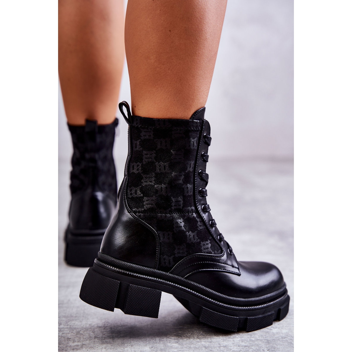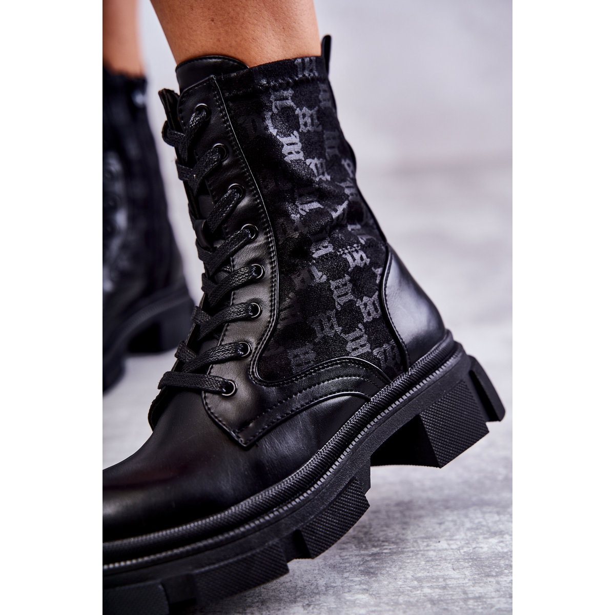 Botinele de damă înalte cu șireturi în negru sunt o alegere excelentă pentru femeile care prețuiesc eleganța și confortul în fiecare zi. Realizate dintr-o combinație de piele ecologică și material textil, aceste botine elegante arată excepțional de moderne. Partea superioară caracteristică a gleznei și călcâiul rigid oferă stabilitate și sprijin piciorului.