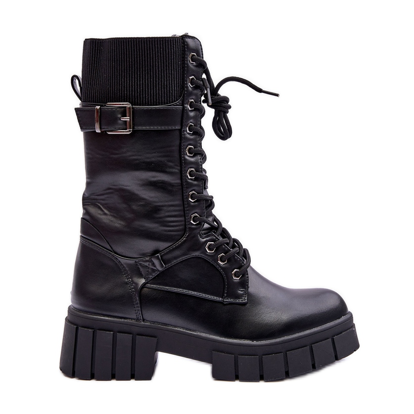 Cizmele au elemente de fixare practice - fermoarul lateral vă permite să vă puneți și să scoateți rapid pantofii, în timp ce șiretul clasic garantează o potrivire perfectă la picior. În plus, inserția elastică facilitează ajustarea pantofilor la diferite circumferințe ale gambei, iar cureaua cu cataramă nu numai că adaugă caracter, ci vă permite și să reglați lățimea căptușei.