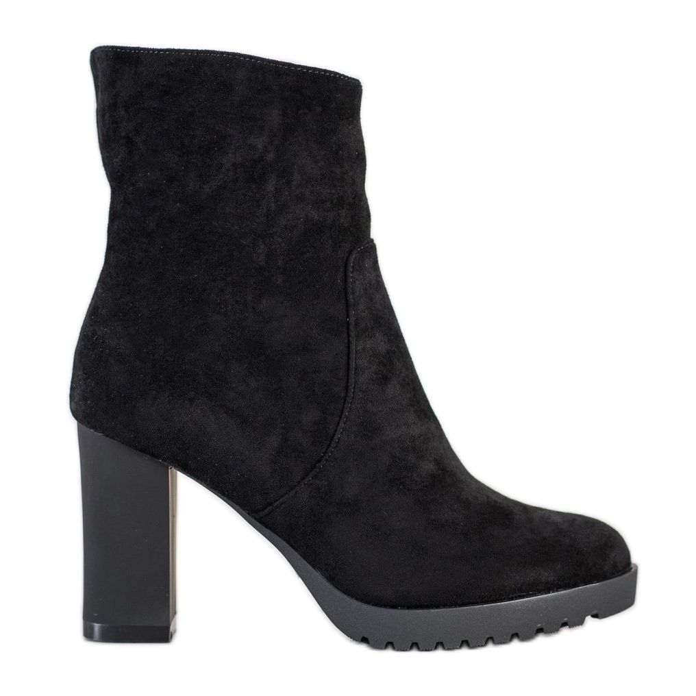 Va prezentam Botine inalte din piele intoarsa de culoare neagra de la renumitul producator SHELOVET. Aceasta este alegerea perfecta pentru femeile care apreciaza stilul si confortul, mai ales in sezonul toamna/iarna.