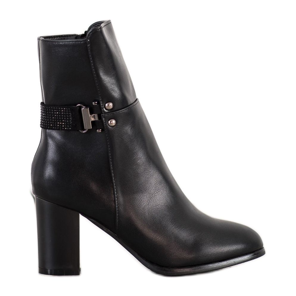 Descoperă eleganța și stilul la maxim cu botinele Sabatina! Acest model este o propunere ideală pentru femeile care apreciază combinația dintre design la modă și confort. Botine înalte într-o culoare clasică neagră se potrivesc perfect stilului elegant, perfecte pentru diverse sărbători și evenimente de seară.