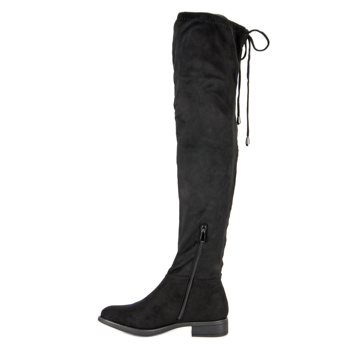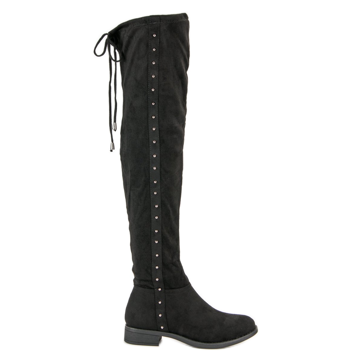 SDS SDS Cizme înalte la coapsă cu strasuri negru