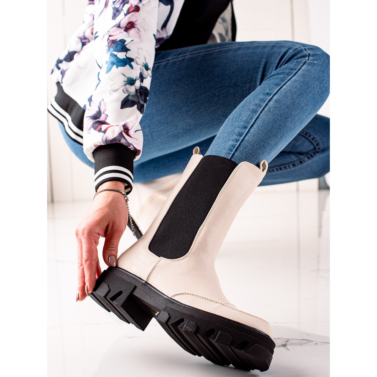 Detalii: Small Swan Cizme înalte pe platformă bej