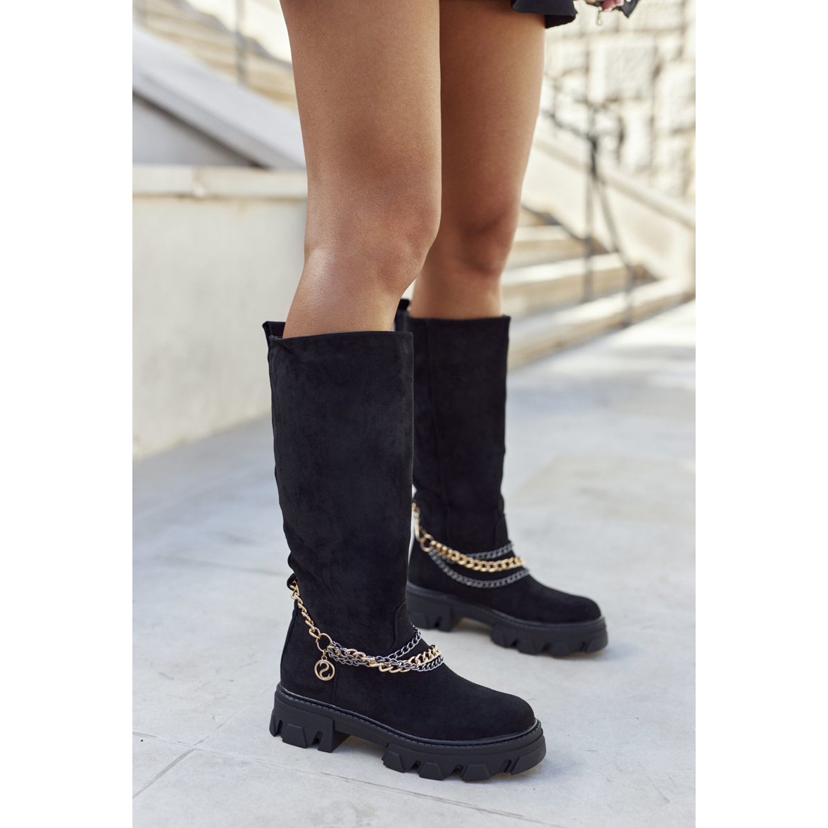 Descoperiți eleganța și confortul în cizmele clasice de damă PS1 de culoare neagră. Aceste cizme stilate până la genunchi sunt confecționate din piele ecologică de piele de căprioară de înaltă calitate, ceea ce le face să arate extrem de atractive și în același timp prietenoase cu mediul.