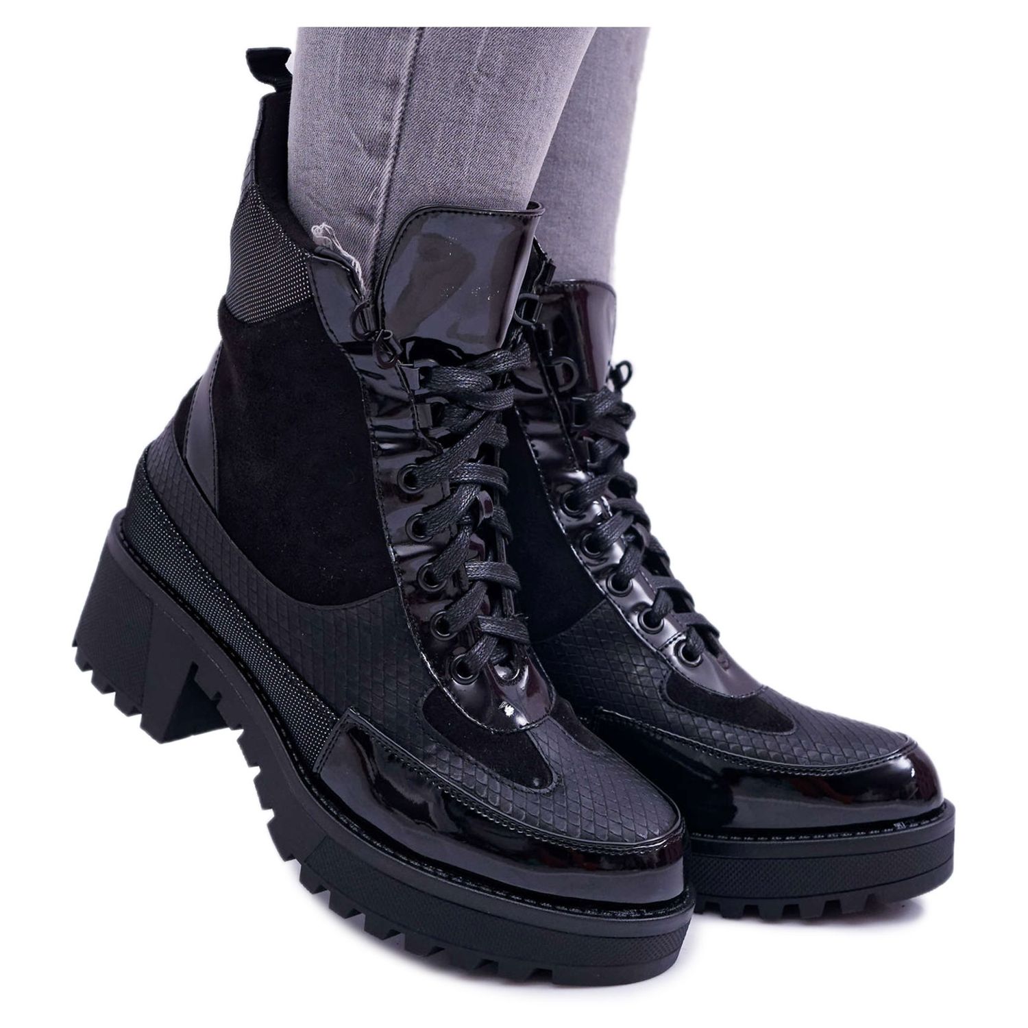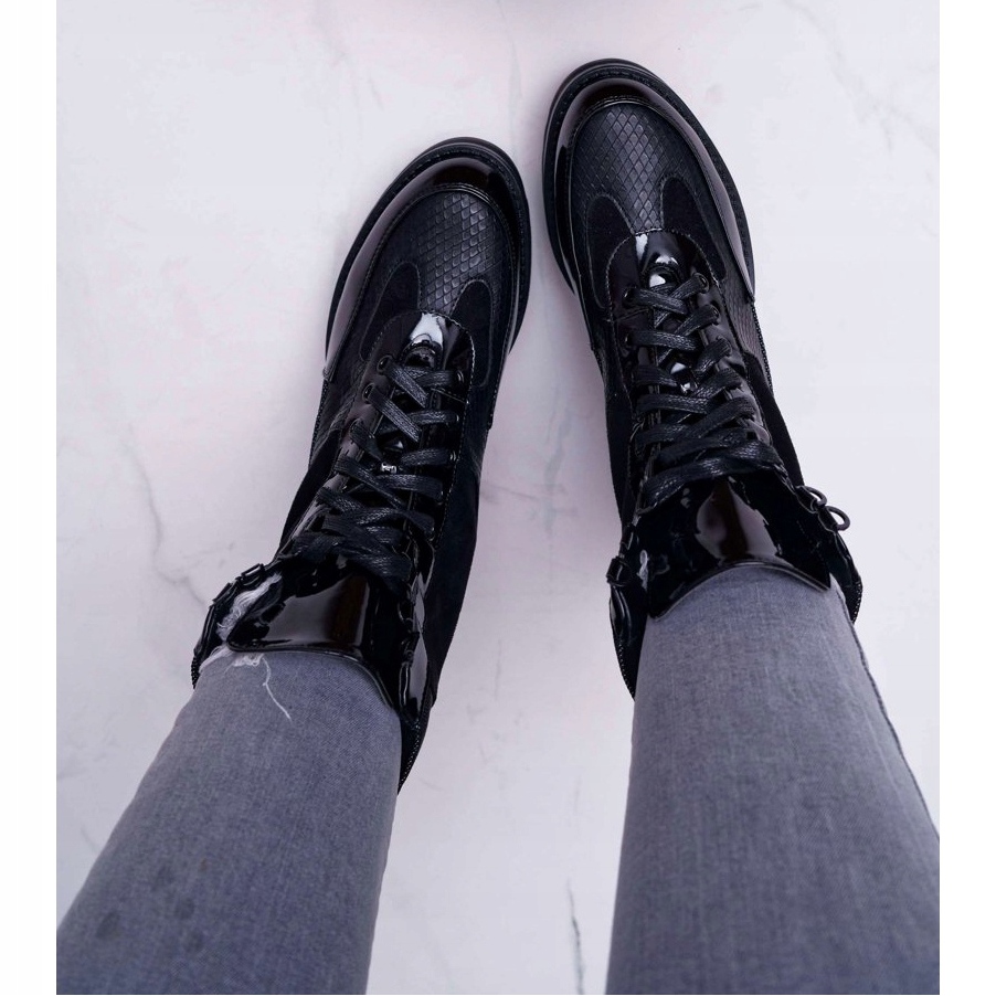 Aceste cizme la modă sunt disponibile într-o culoare neagră elegantă, care se potrivește perfect cu orice stil. Inchiderea cu dantela asigura o potrivire perfecta, in timp ce talpa sintetica mareste confortul de utilizare.