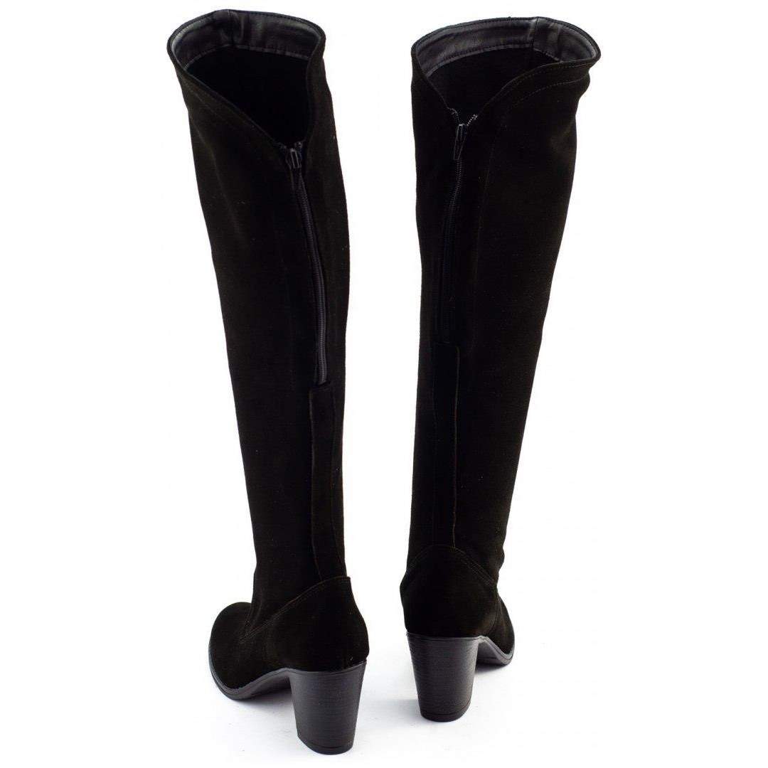 Modelul este prevazut cu fermoar in lateral, care usureaza incaltarea si scoaterea, iar nasul rotund adauga un caracter clasic. Inaltimea totala a cizmei este de aproximativ 52 cm, ceea ce sustine perfect picioarele, iar culoarea sa neagra universala o face sa se potriveasca atat cu pantalonii cat si cu diverse tipuri de fuste si rochii.