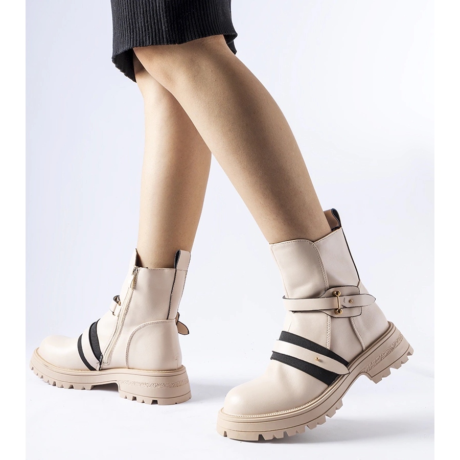 Aceste cizme izolate bej sunt încălțăminte de iarnă la modă și funcțională pentru femei. Confectionate din piele ecologica, aceste botine au un varf rotund care adauga eleganta si stil. Construcția lor înaltă, ajungând deasupra gleznei, oferă un sprijin excelent și protecție împotriva frigului.