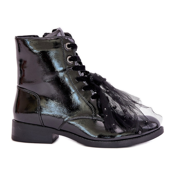 Fixarea cu fermoar din partea laterală face mai ușor de pus, iar decorațiunile suplimentare de dantelă oferă încălțămintei un personaj unic. Partea superioară are o înălțime de 14,5 cm și o lățime de 11,5 cm, ceea ce înseamnă că modelul se adaptează perfect la picior, iar nasul rotund garantează o libertate adecvată.