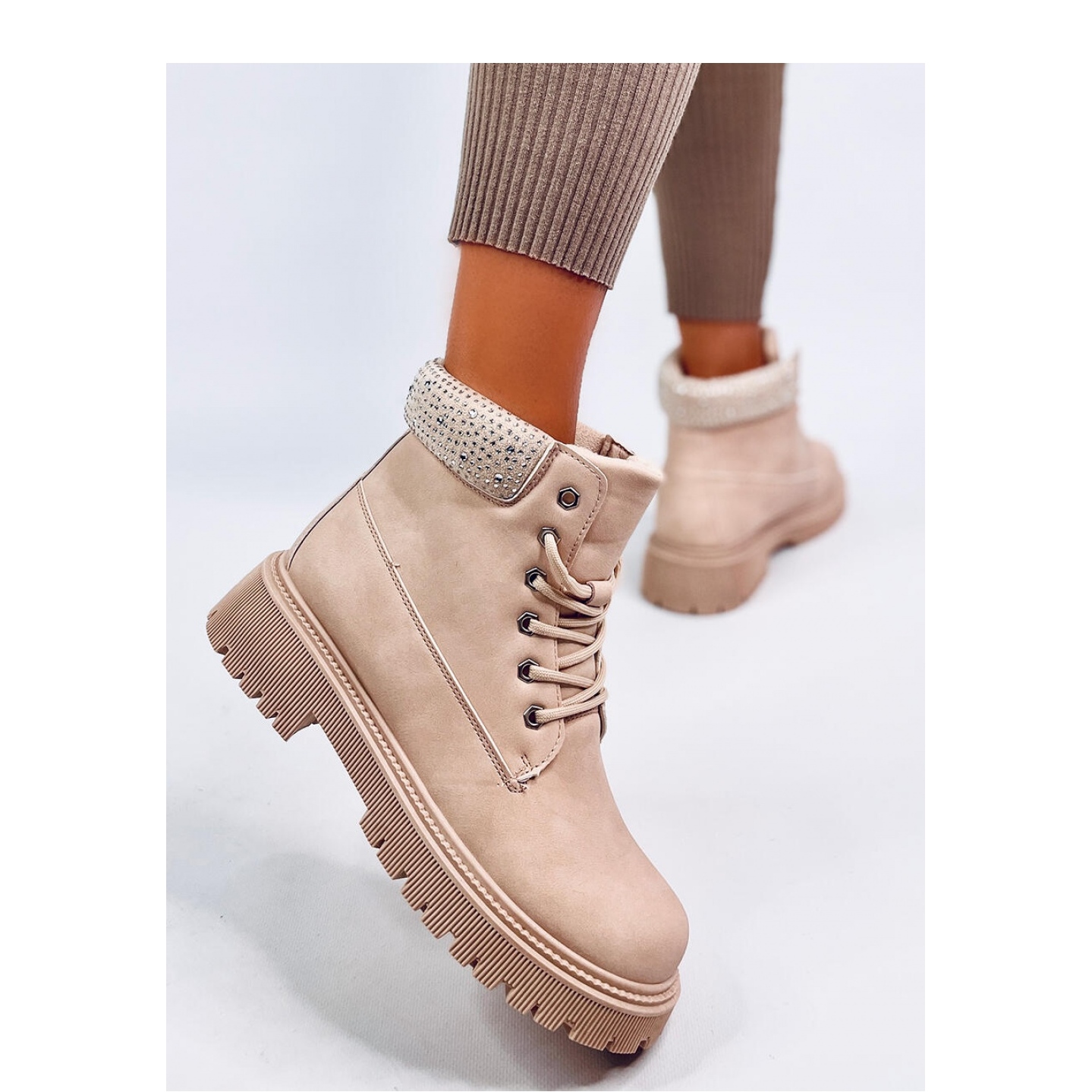 Botine de damă cu șireturi - cizme de trekking cu protector. Fiți atenți la croiala lor iconică cu o aplicare strălucitoare în partea de sus a căptușelii. Nu numai că arată grozav, dar sunt și super confortabile! Sunt din piele ecologica, iar interiorul este izolat cu blana draguta, delicata.