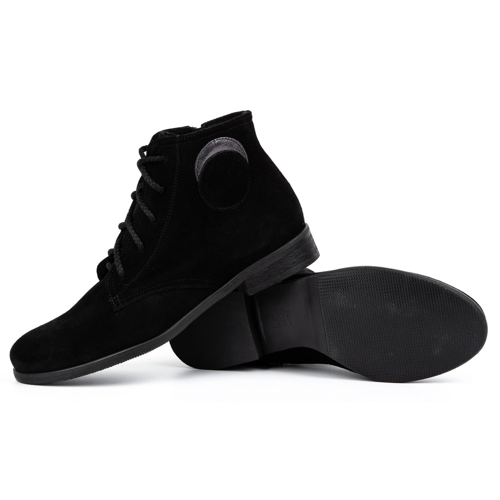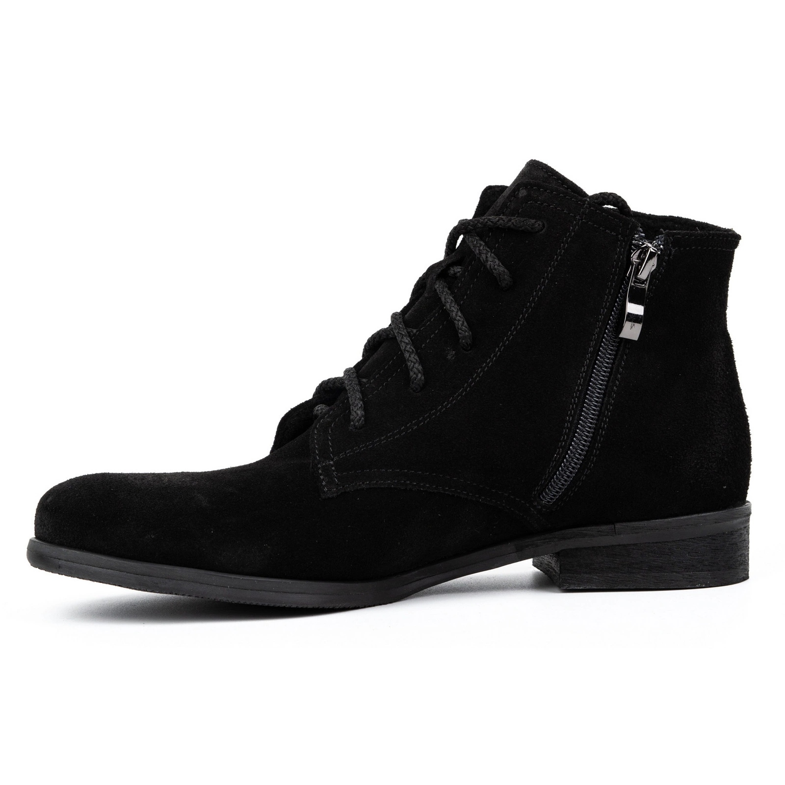 Cizmele se disting printr -un călcâi plat de 2 cm înălțime, ceea ce le face extrem de confortabile și stabile atunci când merg pe jos. Fixarea cu fermoar și la dantelă facilitează punerea și potrivirea la picior.