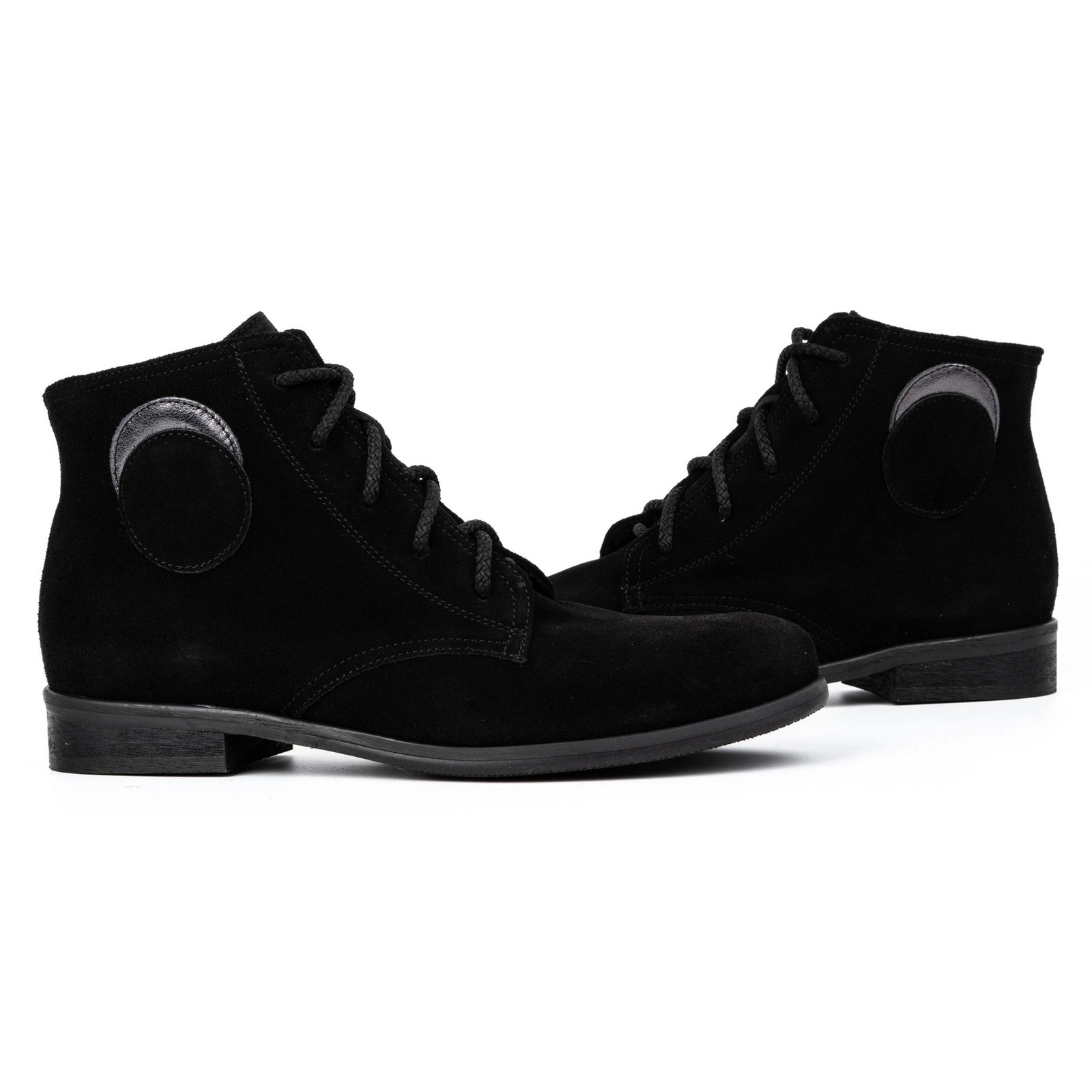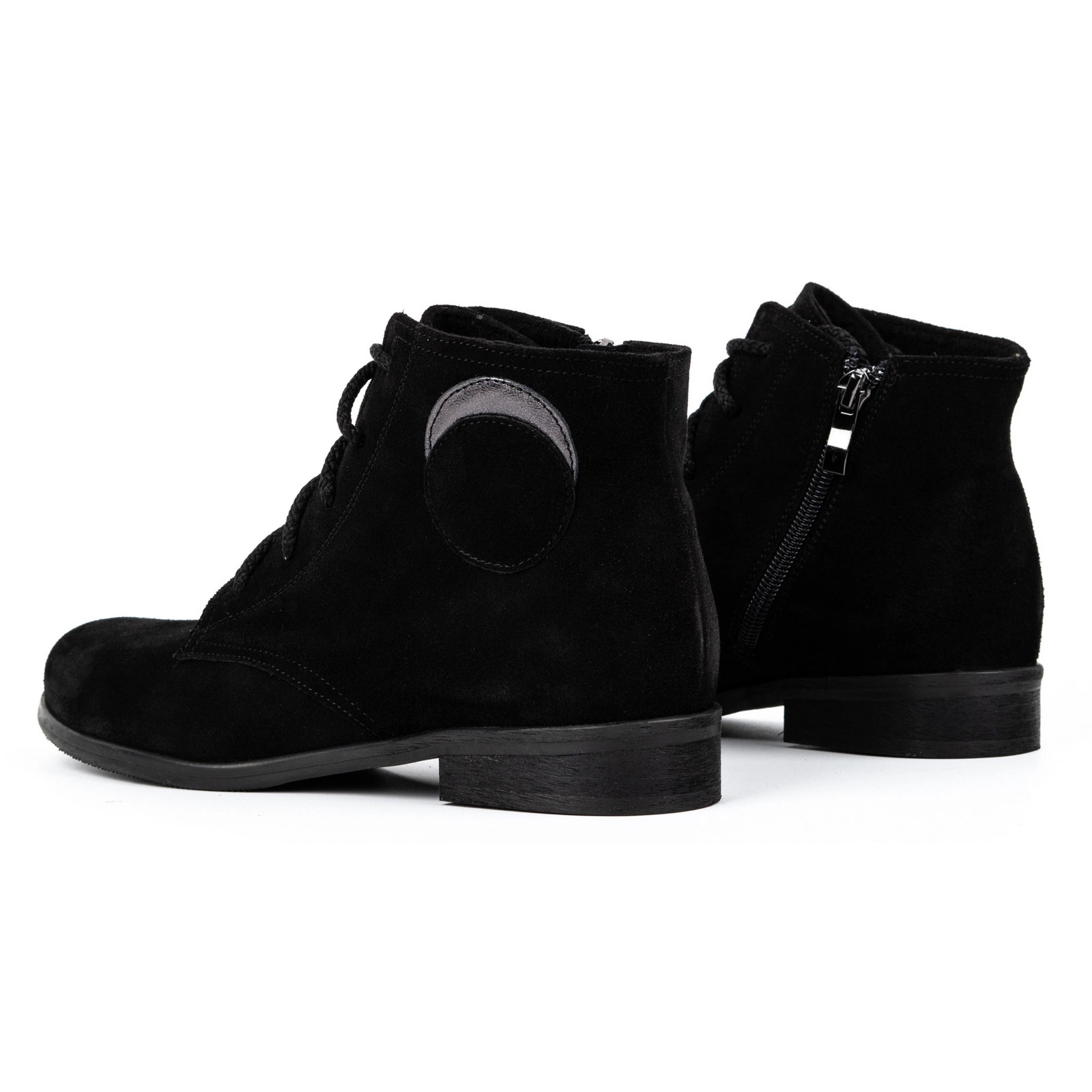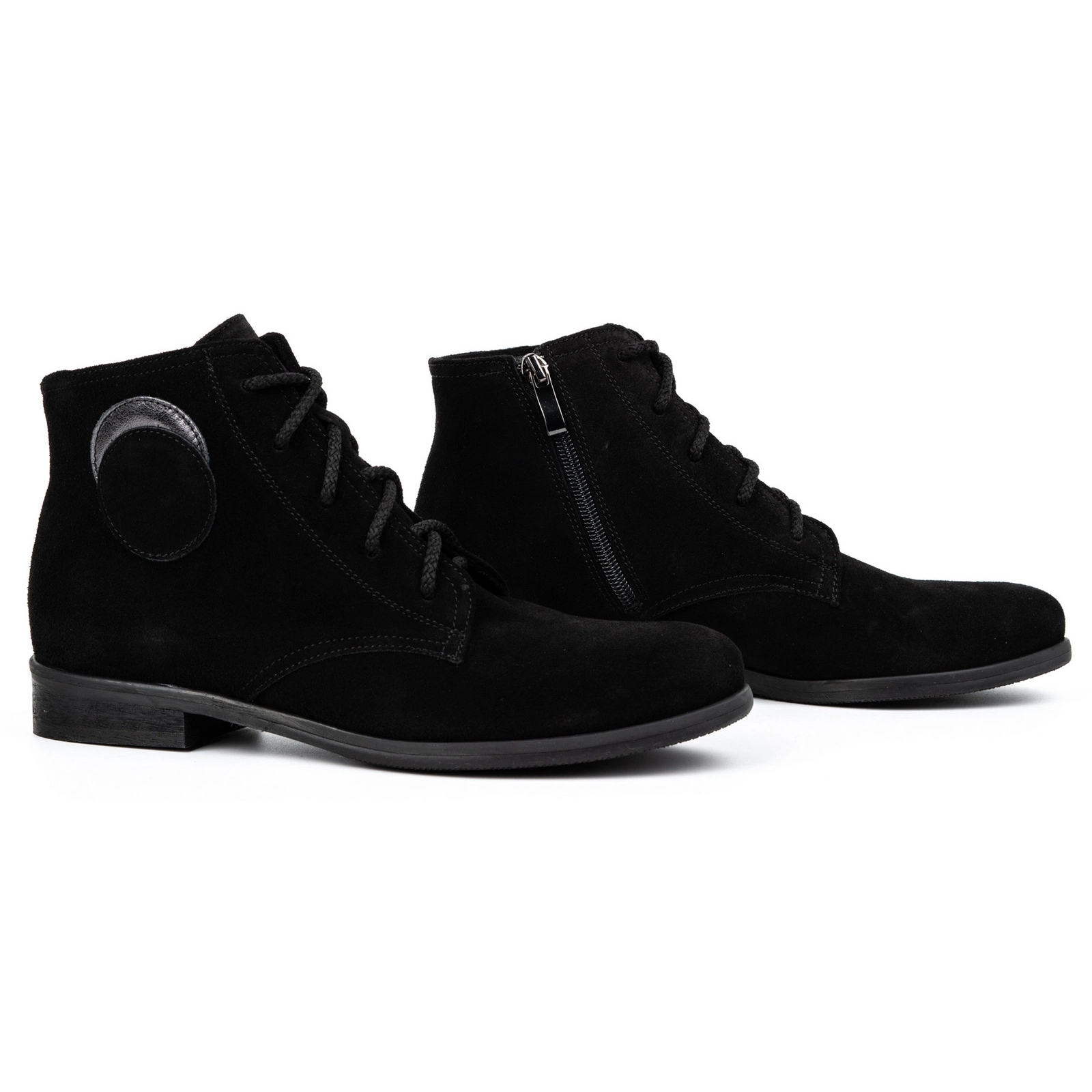 Cizmele au o înălțime a gleznei, ceea ce înseamnă că se potrivesc perfect cu diferite stiluri - de la fiecare zi la mai multe seară. Un nas rotund le oferă un caracter subtil, iar utilizarea pielii naturale din piele de căprioară nu numai că asigură estetica, ci și durabilitatea.