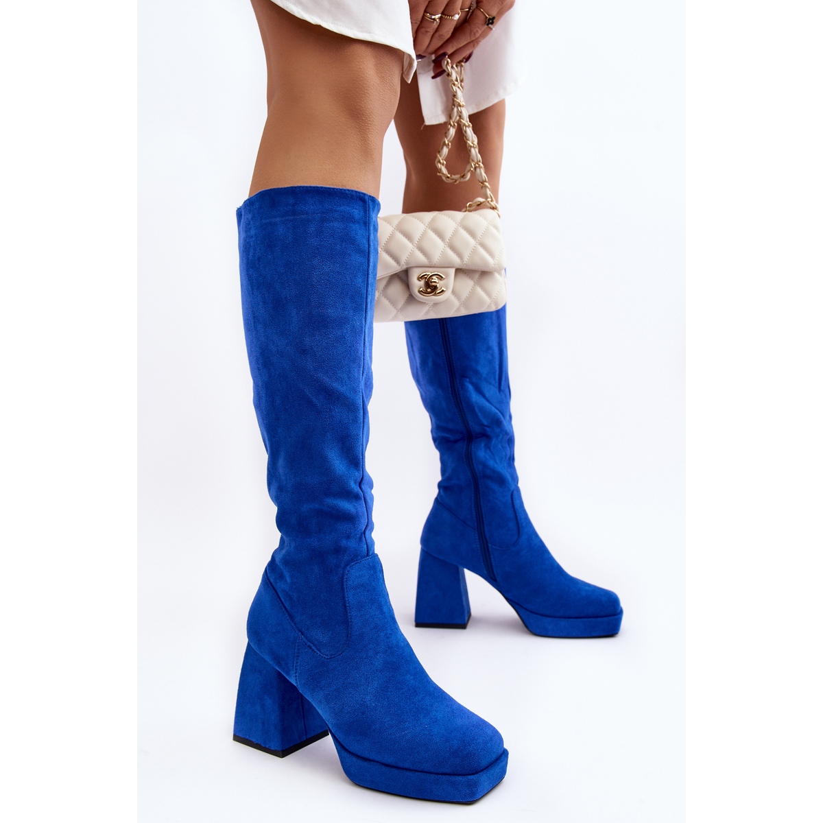 Detalii: Cizme izolate de damă cu tocuri groase, Layala albastră albastru