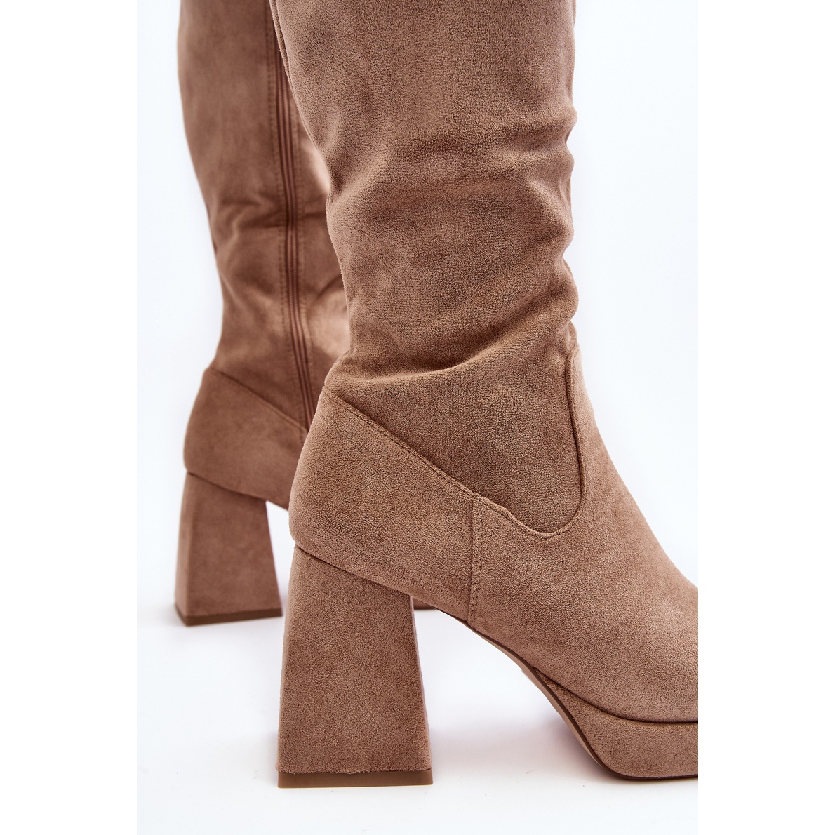 Detalii: Cizme izolate de damă Layala bej cu tocuri masive