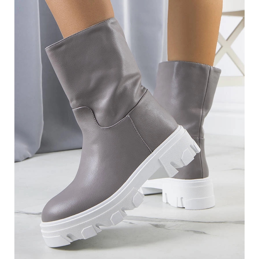 Cizmele elegante pentru femei calde ale lui Nasidi într -o culoare gri clasică - perfectă pentru zilele reci. Partea superioară din piele ecologică de înaltă calitate, blană moale în interior și o talpă expresivă a tractorului, cu cauciuc alb, creează un model la modă și convenabil pentru sezonul de toamnă/iarnă.