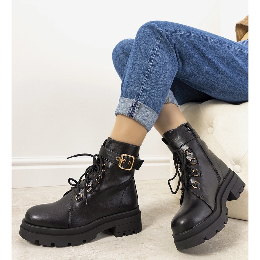 Cizmele sunt prinse cu fermoar, ceea ce le face mai usor de incaltat, iar cravata suplimentara permite o potrivire perfecta a partea superioara la picior. O talpă înaltă de trapper cu ochi eleganti de dantelă de culoare aurie va atrage cu siguranță atenția și va adăuga caracter oricărui stil.