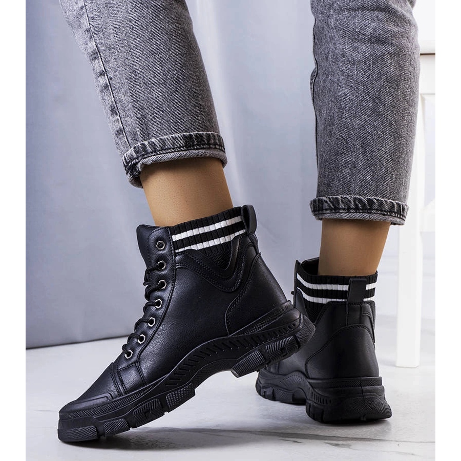 Botinele negre izolate sunt combinația perfectă de stil și funcționalitate pe care fiecare femeie activă ar trebui să o aibă în garderoba ei. Acești pantofi sport eleganti, așezați pe o talpă plată de cauciuc, oferă confort în timpul drumețiilor de iarnă și sunt o alegere perfectă pentru excursiile în afara orașului.