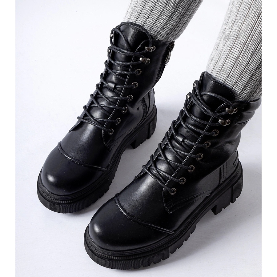 Acestea sunt botine, prinse cu fermoar și cu șireturi. Au platforma ca tip de toc. Modelul de pantofi este uniform, nu au elemente decorative suplimentare. Aceasta este o încălțăminte clasică, elegantă și universală pentru zilele de iarnă.