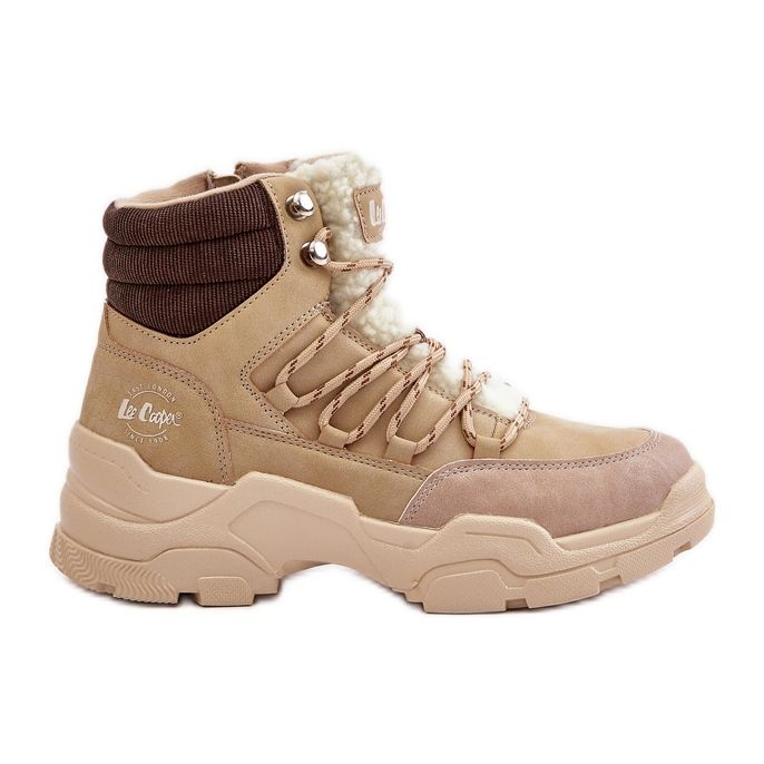 Înălțimea călcâiului este de 3 cm, ceea ce permite mișcarea liberă, iar partea superioară care ajunge la glezne (12 cm) oferă suport și stabilitate suplimentară. Cizmele de drumeție Lee Cooper au un deget rotund și sunt disponibile într -o culoare bej delicată, ușor de combinat cu diverse stilizări.