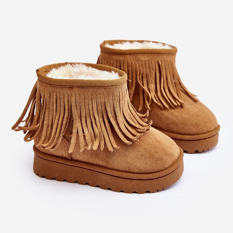 Detalii: Cizme izolate pentru zapada pentru copii cu franjuri decorative Camel Nimia maro