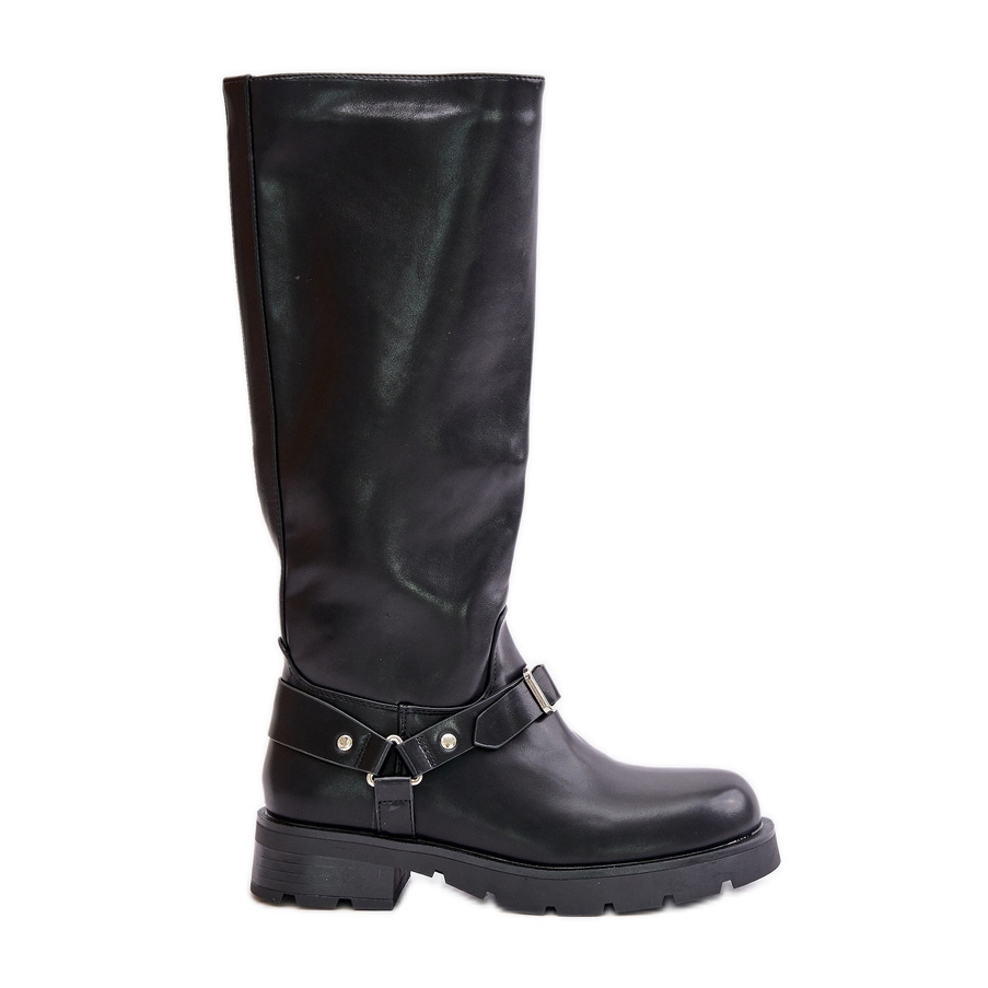 Cizmele au un element de fixare practic cu fermoar, ceea ce face mai ușor să le punem pe ele. Degetele rotunde și vârfurile care ajung la genunchi asigură confortul purtării, iar dungi suplimentare cu o cataramă le oferă un personaj unic. Perfect pentru sezonul de toamnă și iarnă!