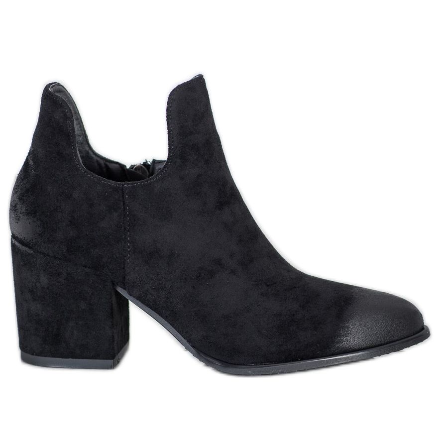 Botinele VINCEZA se remarca printr-o inchidere cu fermoar si un decupat la glezne, ceea ce le confera un farmec unic si le face o alegere ideala pentru sezonul toamna/iarna. Talpa netedă, sintetică, asigură stabilitate și tracțiune adecvată, ceea ce este extrem de important în zilele mai reci. Interiorul pantofului este finisat cu piele ecologica, ceea ce sporeste confortul la purtare.