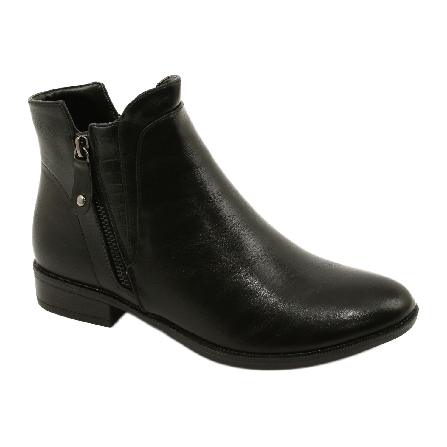 Botinele M.Daszyński din piele ecologică AM65-91 de culoare neagră sunt alegerea perfectă pentru femeile care doresc să îmbine eleganța cu confortul. Aceste cizme elegante se disting printr-un design clasic, atemporal, care se potrivește perfect în diverse stiluri - atât cele de zi cu zi, cât și cele mai formale.