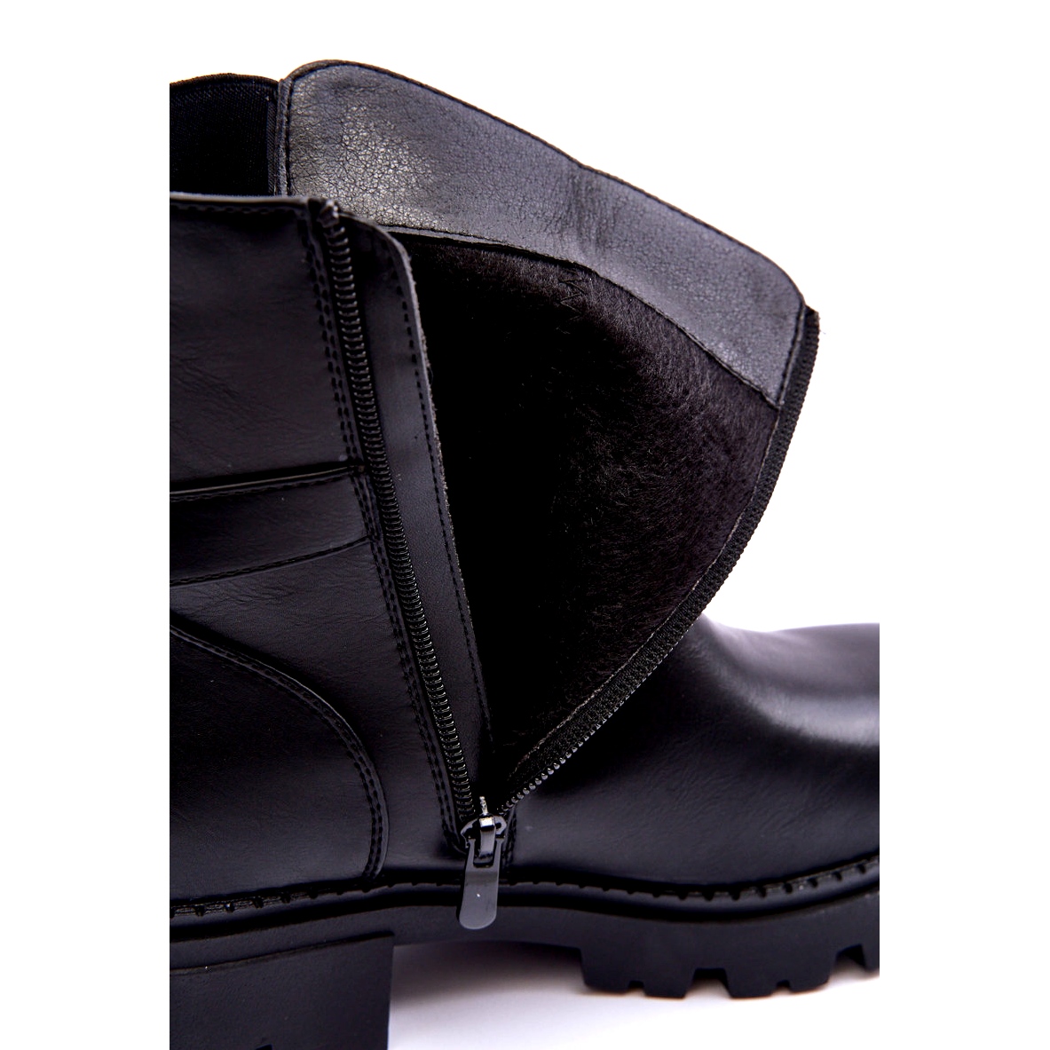 Cizmele sunt fixate cu o încuietoare practică situată pe lateral, ceea ce face mai ușor să se pună și să decoleze. În partea superioară există o centură elegantă, cu un ornament, adăugând un personaj întreg și un stil unic. Situate pe o platformă masivă și tocuri plate, acestea garantează stabilitate și confort de a purta toată ziua.