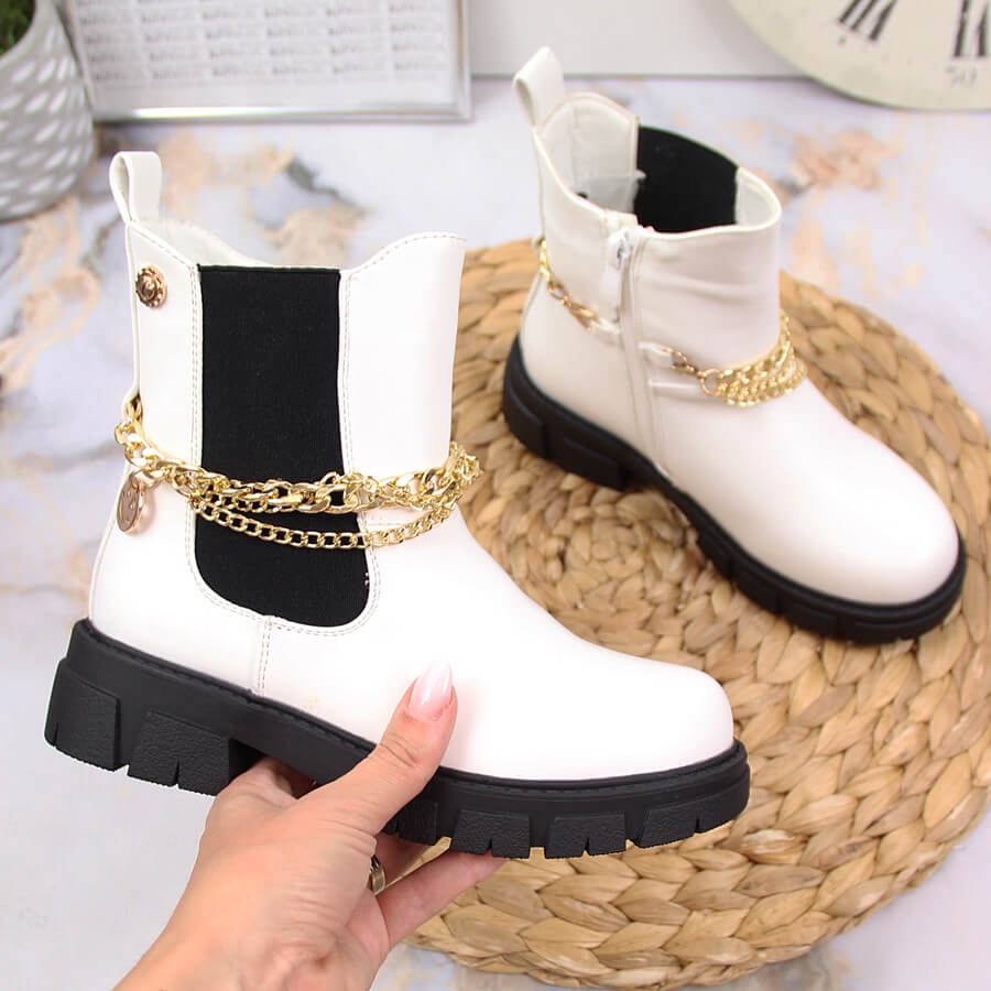 Descoperă cizmele Chelsea de fete extrem de la modă cu lanț într-o culoare albă elegantă, care sunt un hit absolut în acest sezon! Produsul de la renumitul brand Vinceza imbina perfect stilul cu confortul, datorita manoperei de inalta calitate si atentiei la fiecare detaliu.