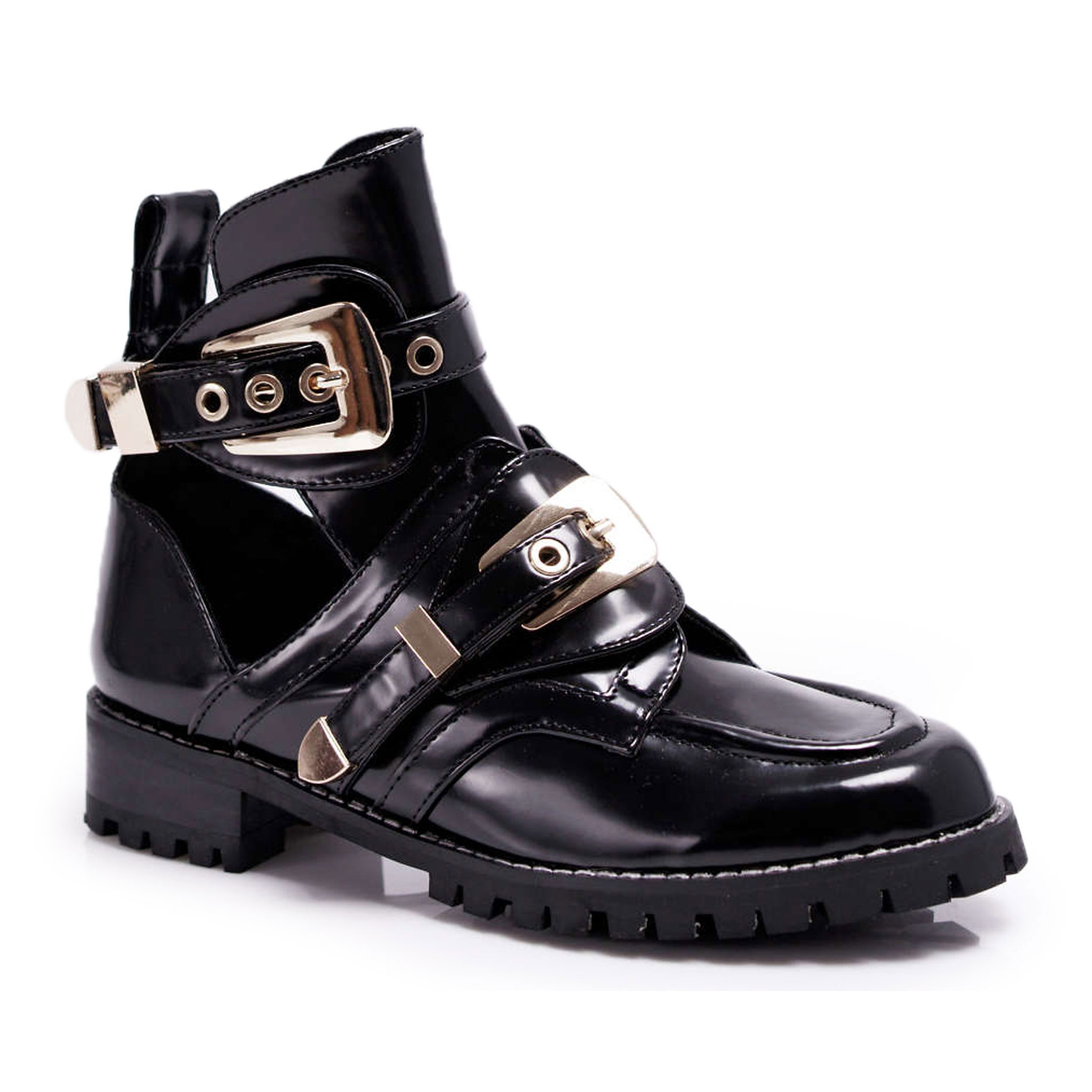 Botinele Lu Boo Black Patent Rock Girl cu decupaje sunt un must-have pentru fiecare iubitor de modă care vrea să-și exprime individualitatea și stilul. Aceste cizme atrăgătoare, cu un design unic, îmbină eleganța pielii ecologice lacuite cu un pic de caracter rock, datorită cataramelor aurii care atrag atenția.