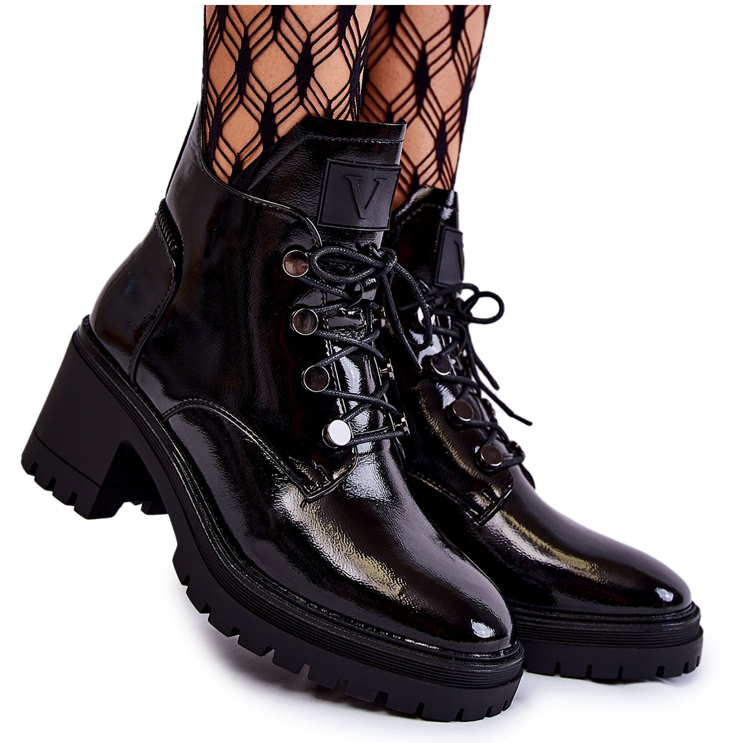 Detalii: Vinceza Cizme lăcuite calde cu șireturi Ragnhild negru