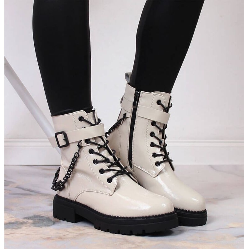 Detalii: Cizme lacuite cu lant izolat Laura La.Fi W PMR28 bej
