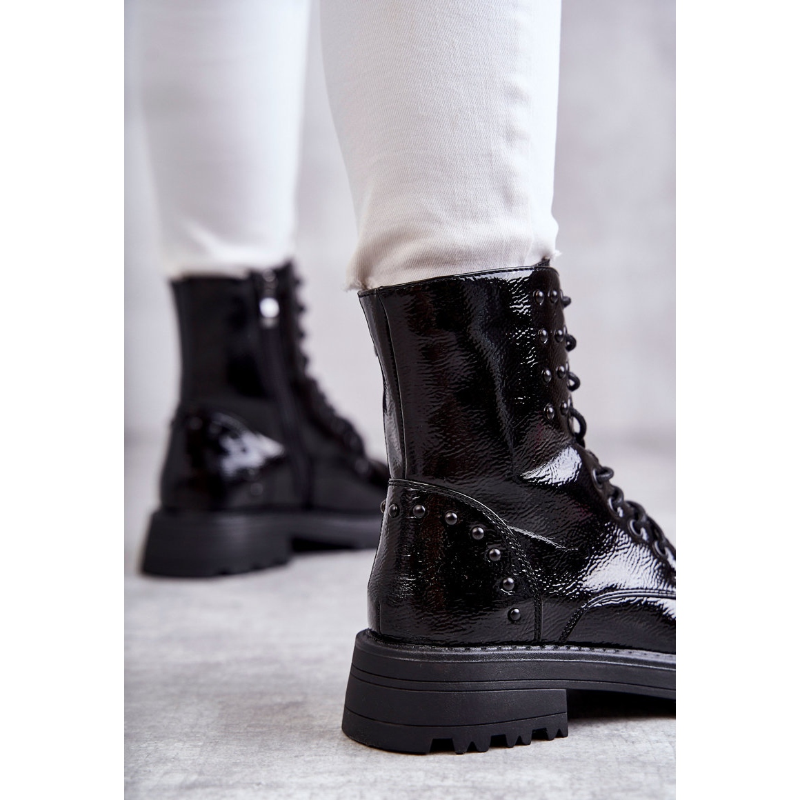 Detalii: PJ1 Cizme Lăcuite Cu Știfturi Palmira Neagră negru