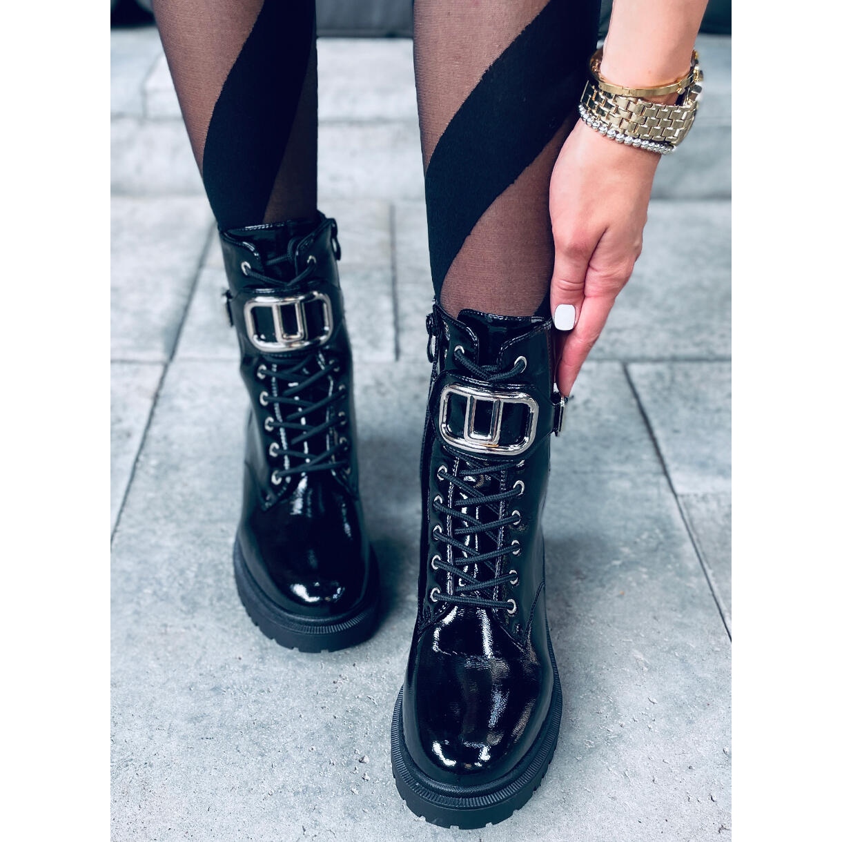 Alege botine lacete Mila PATENT (NEGRE) și bucură-te de aspectul și confortul la modă în fiecare zi!