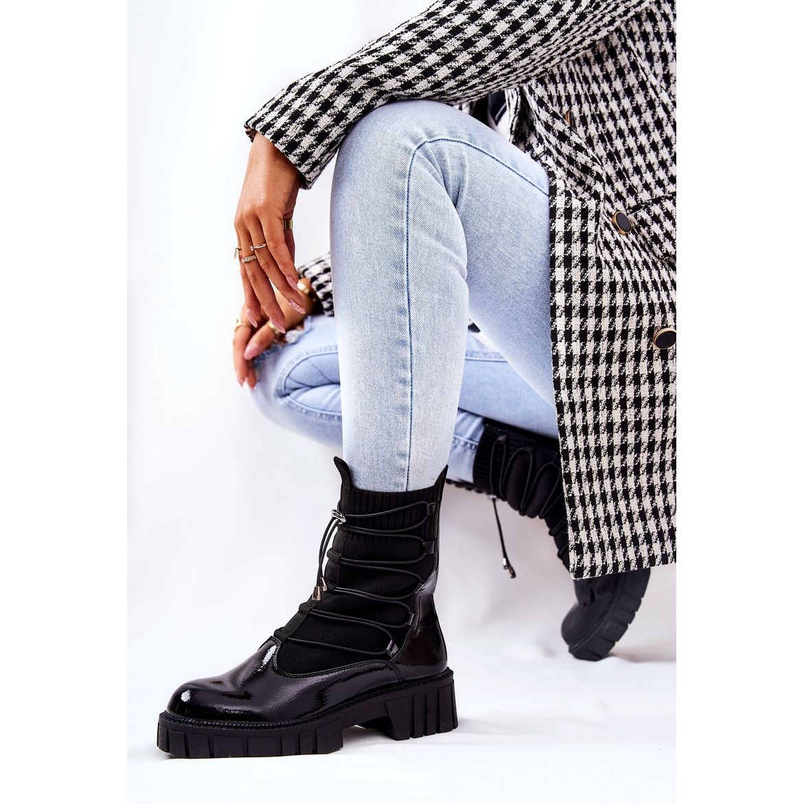 Detalii: PL4 Cizme lăcuite Muncitori cu ciorap Negru Connor