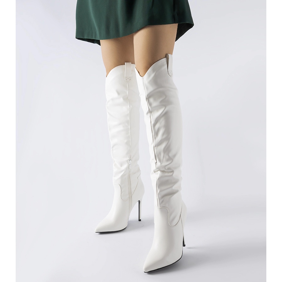 Inna marka Cizme lungi albe cu toc inalt de la Cerati