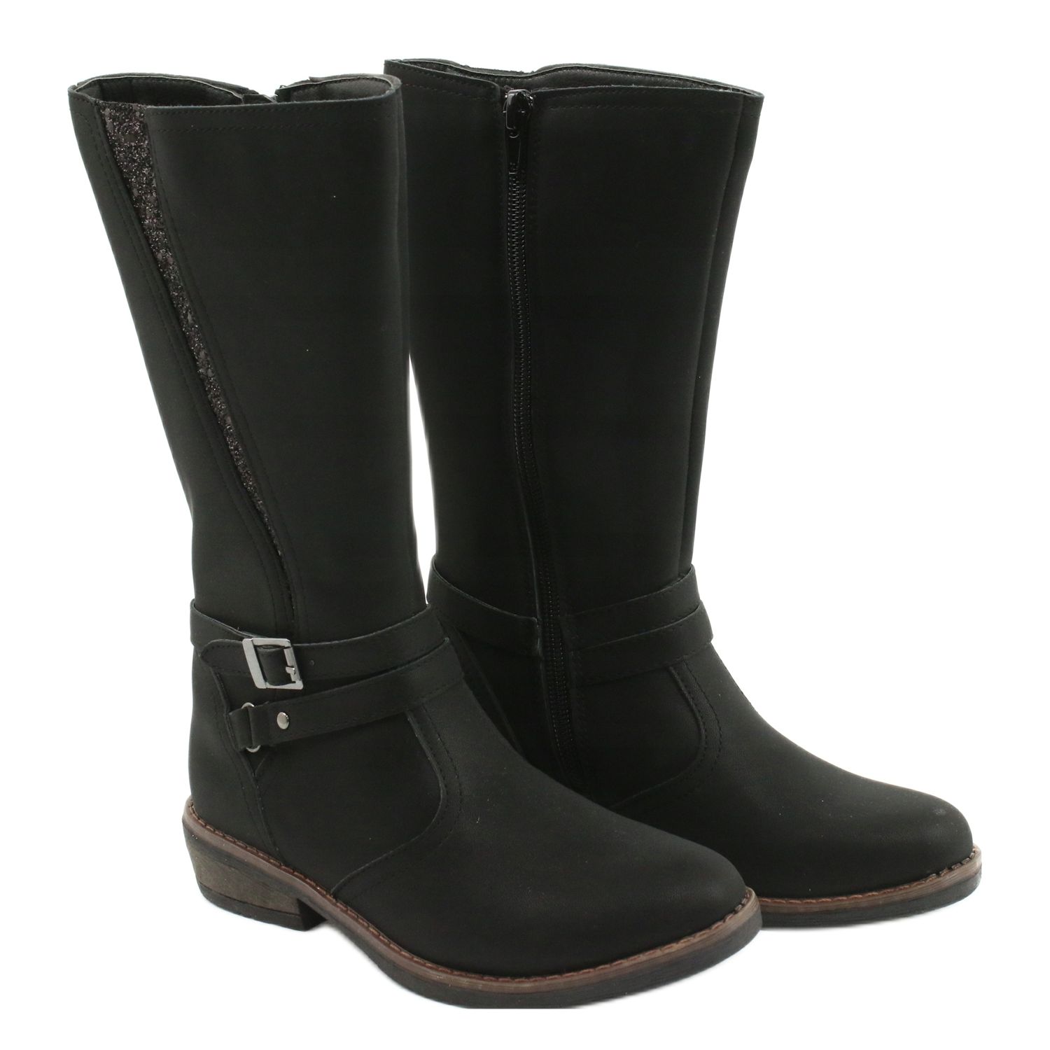 Va prezentam cizme americane lungi, negre, GC24/20 cu sclipici de la renumitul brand American Club, care vor incanta fiecare mica fashionista! Aceste cizme de fete sunt confectionate din piele ecologica de inalta calitate, ceea ce le face nu numai stilate, ci si ecologice.