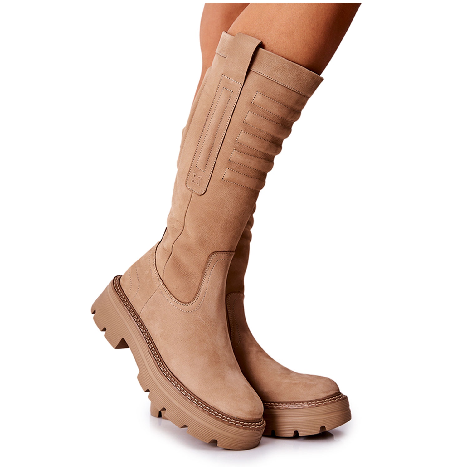 Croiala lor clasica cu o inaltime a tijei de 35,5 cm subliniaza perfect silueta, iar talpa masiva si sigura asigura stabilitate la fiecare pas. Un avantaj suplimentar este fermoarul care rulează pe toată lungimea căptușei, ceea ce facilitează încălțarea și scoaterea pantofilor. Cizmele sunt echipate cu un vârf rotund, ceea ce le conferă un caracter elegant, dar confortabil.
