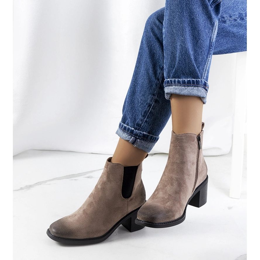 Cizmele elegante, confortabile și universale - Aston sunt o propunere pentru zile mai răcoroase, combinând o tăietură atemporală cu soluții practice. Fabricate din ekozamsz neted, în culoarea taupe -ului închis, încorporat pe un călcâi stabil, cum ar fi un post, sunt minunate în stilizările de zi cu zi și de iarnă.