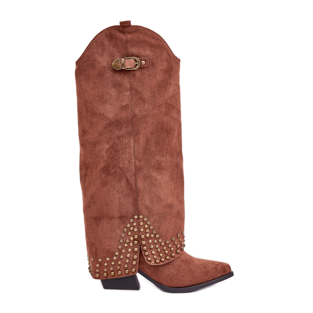 Detalii: Cizme maro cu partea superioară răsturnată pe toc înalt
